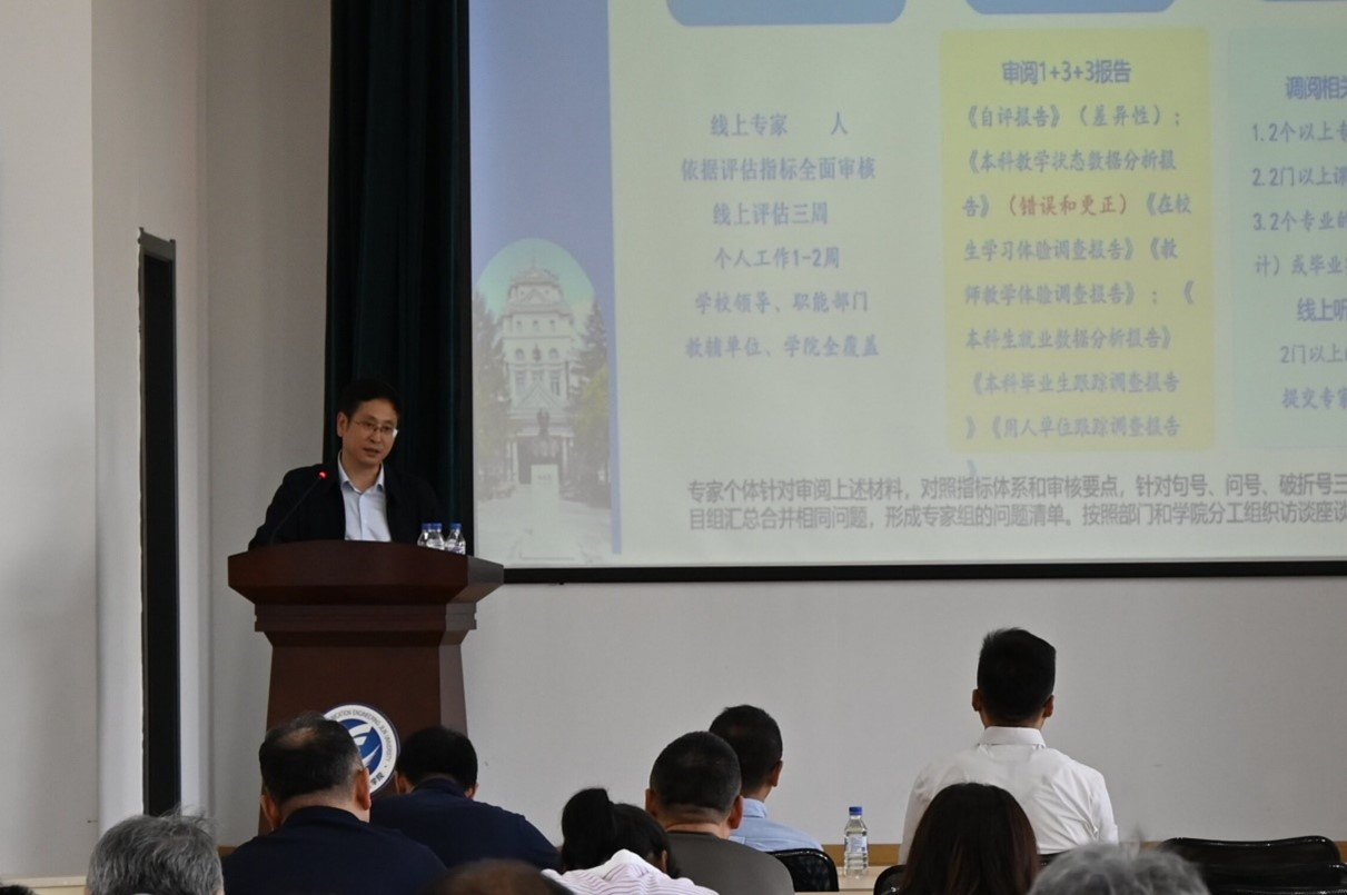 随后,特邀嘉宾金祥雷主任进行了主题报告。金主任详细解读了本科公司产品审核评估的工作要点,并从专家考察方式、教学质量整改标准、课堂教学、线上访谈等多方面进行指导。他的专业见解和丰富经验为公司迎评工作提供了宝贵建议。
